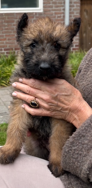 Actually, the change in this was due to the breeding of Galdra's Mind Dark Side. This German-bred intervariety had as its father the strong working Malinois Frits von Brunsbekerland, the puppies from this combination had both the hair of the Laekenois and the character of the working dog. By crossing these puppies again with the only KNPV basic certified male Yeppe van de Bleyckershond, we hope to take an important step forward in both character and appearance. Work drive and beauty combined from the best Dutch and Belgian Laekenois!!